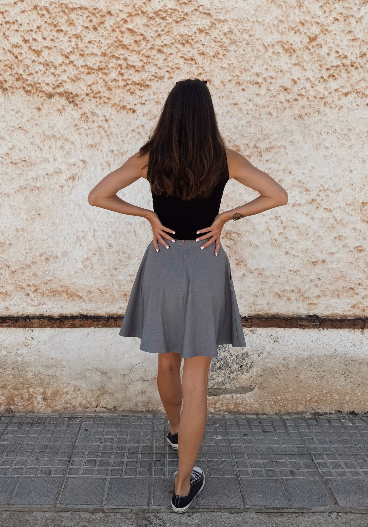 THE FLOW SKIRT ist ein klassischer Tellerrock mit wunderschön fließender Silhouette, der sofort für einen femininen und hochwertigen Look sorgt. Der 4 cm breite Bund formt eine schöne Taille, während der nahtverdeckte Reißverschluss in der hinteren Mitte für ein sauberes, professionelles Finish sorgt.