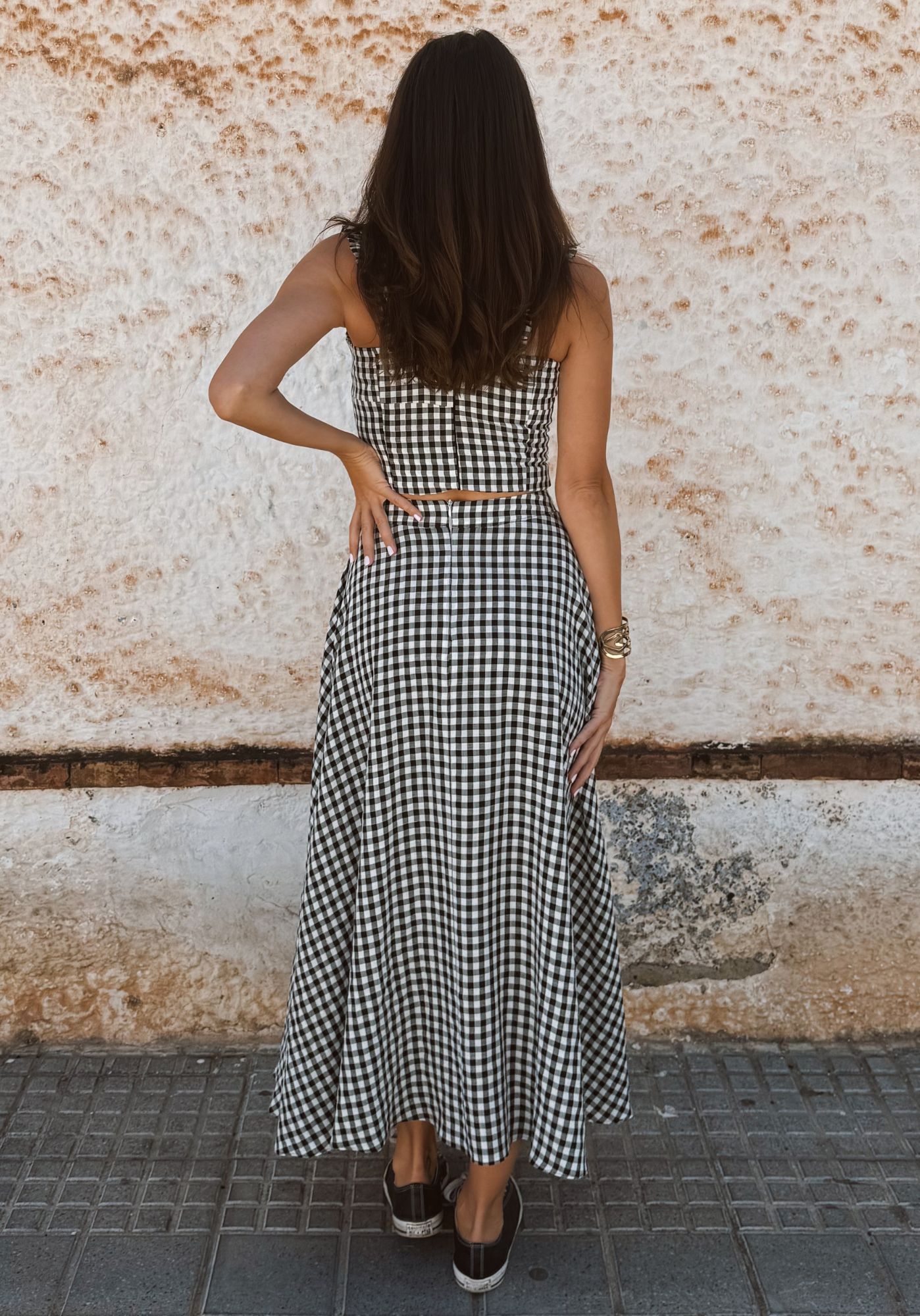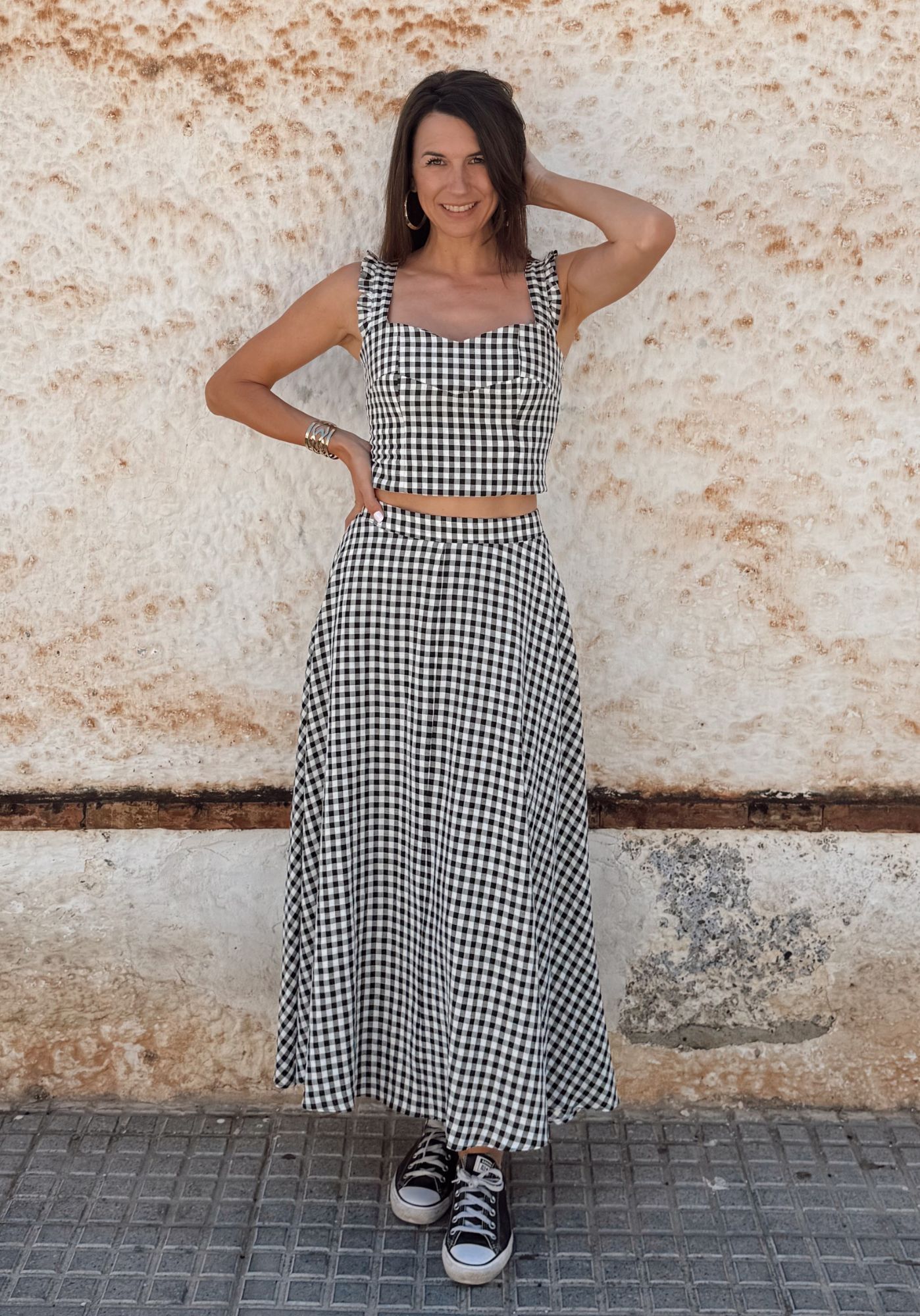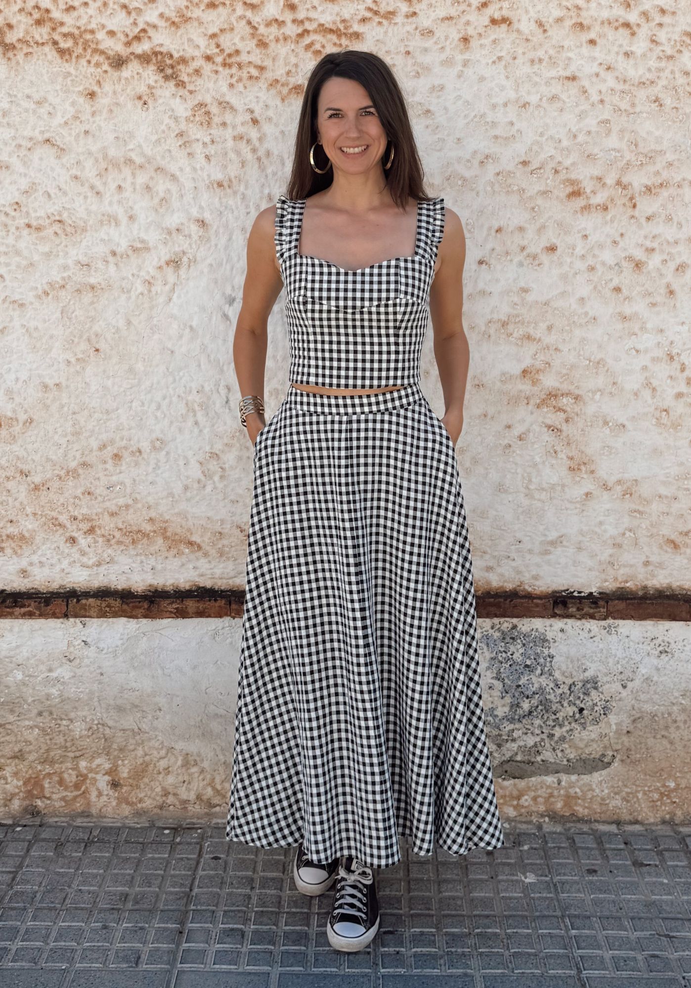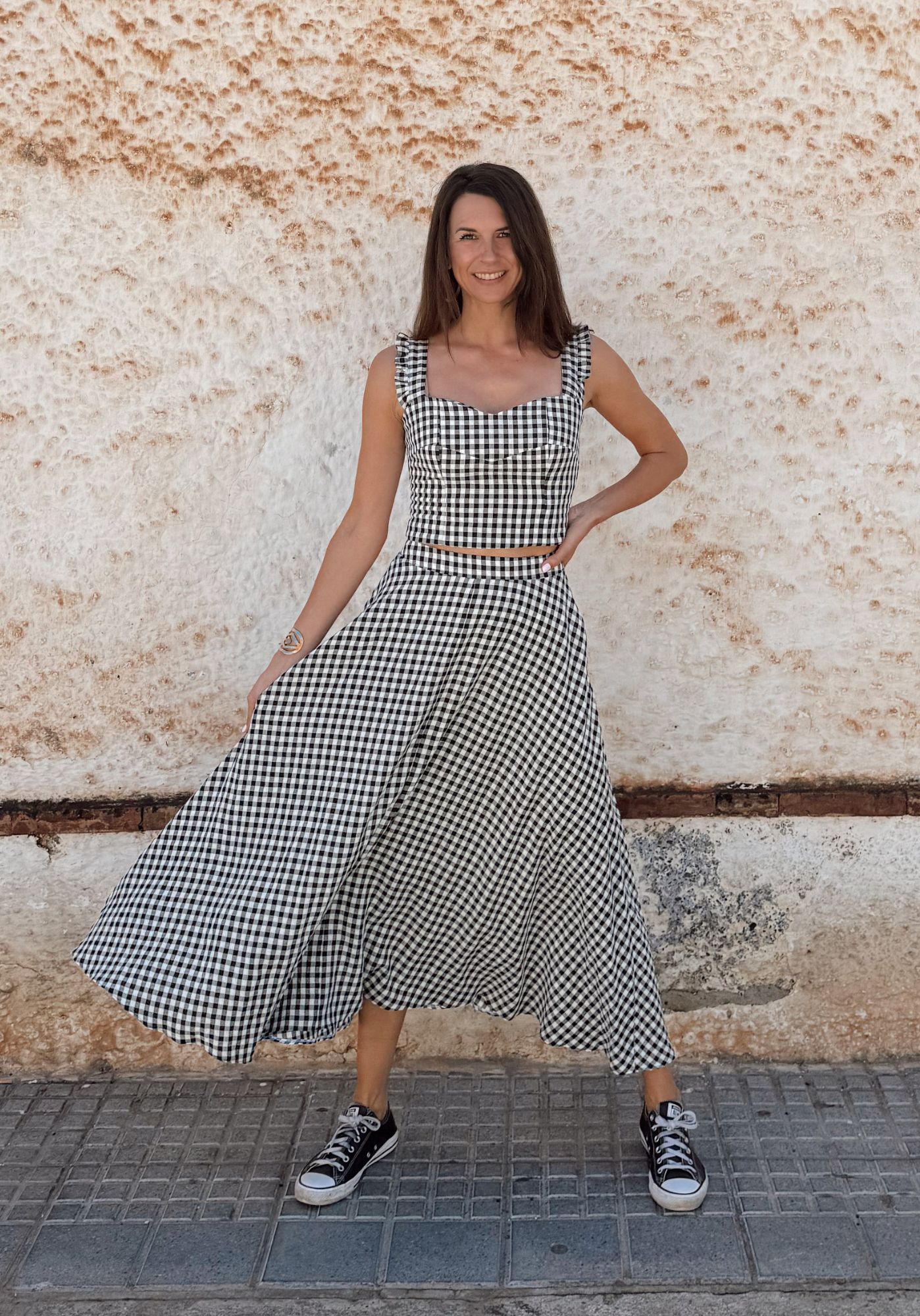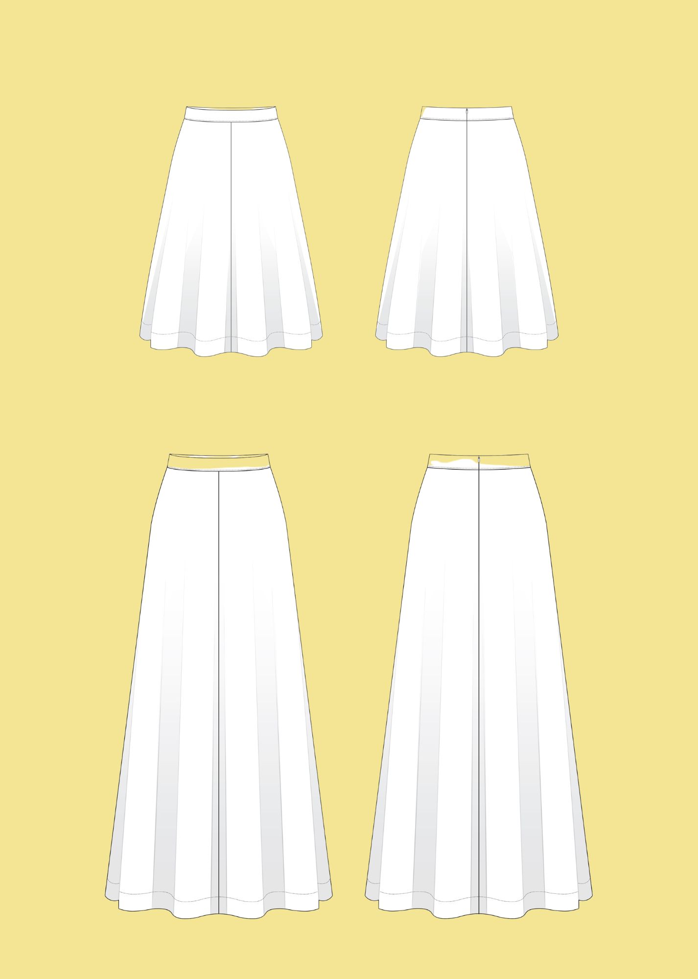 Du kannst den Rock ganz flexibel nähen – als elegante Maxi-Variante oder in Knielänge, die bereits im Schnittmuster eingezeichnet ist. Natürlich lässt sich die Länge auch individuell anpassen, sodass du genau den Look kreierst, der zu dir passt.