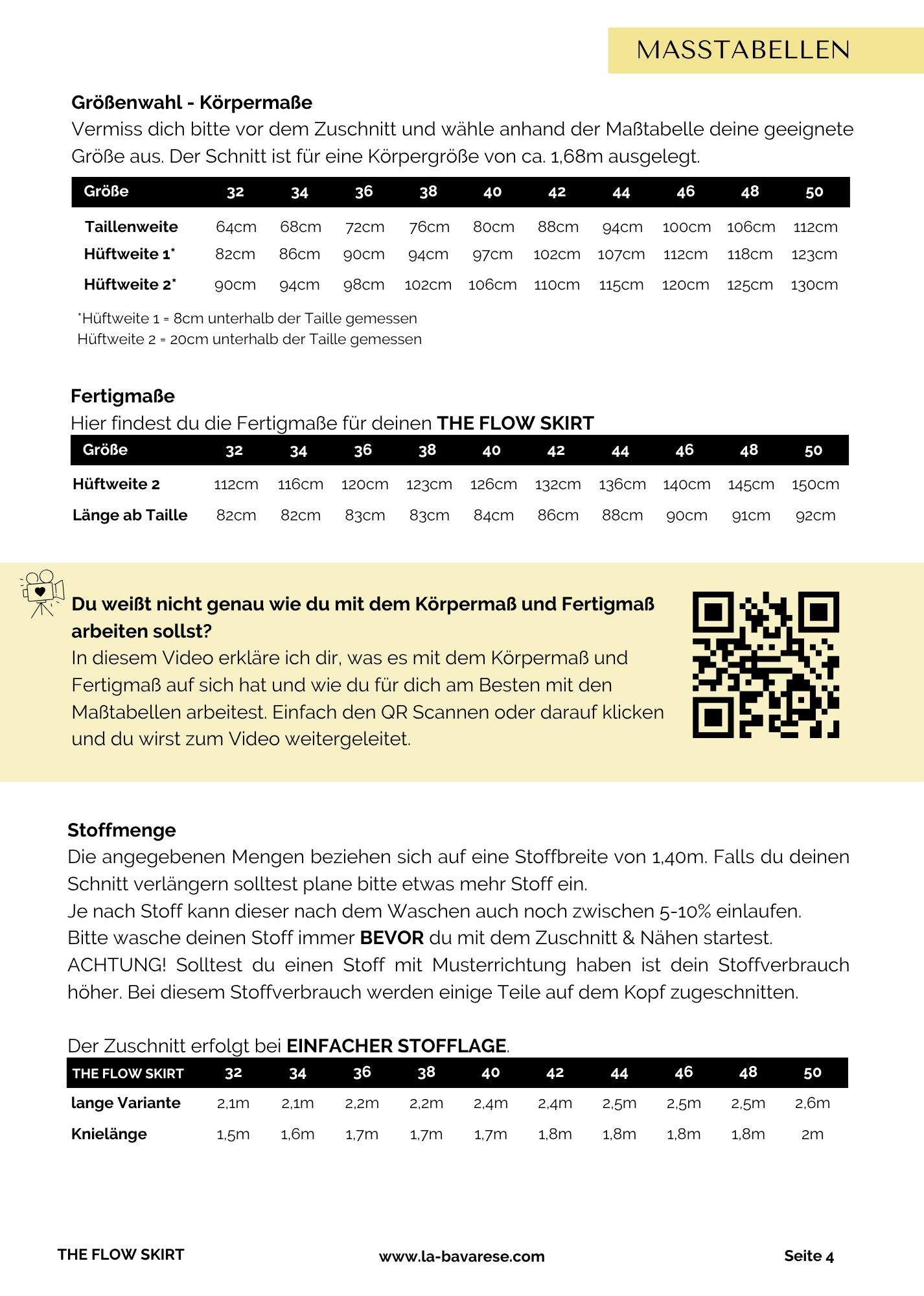 THE FLOW SKIRT ist für Webware (nicht dehnbare Stoffe geeignet).