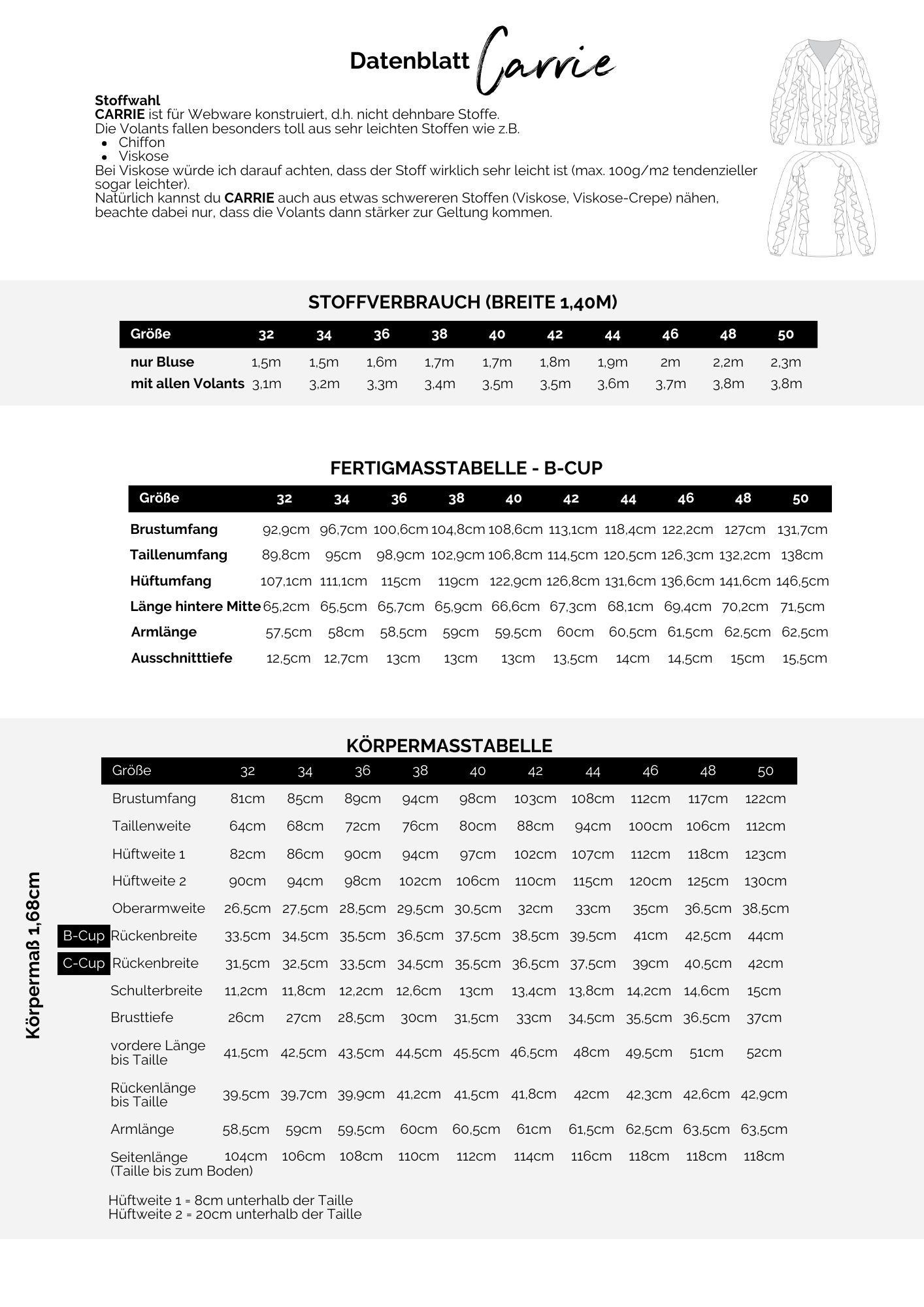 >>B-Cup: PDF mit Maßtabelle und Stoffverbrauch herunterladen<<